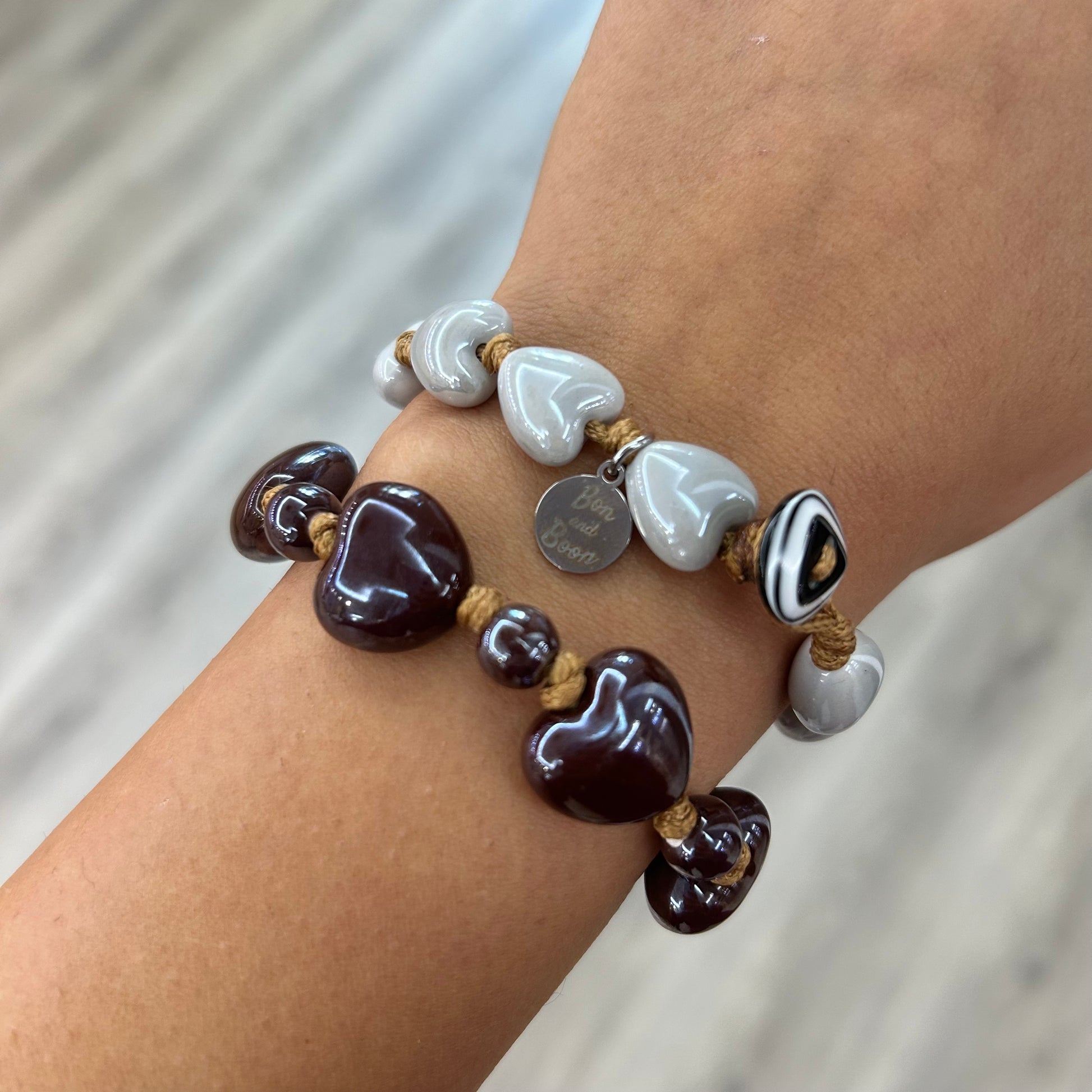 Bracciale in ceramica colorata attraverso la tecnica della smaltatura, cordino cerato e dettaglio in acciaio. Resistenti all'acqua. Essendo realizzati a mano il colore potrebbe leggermente variare, donando unicità ad ogni pezzo. Il bracciale misura 20 cm circa ma può essere adattato al proprio polso estendendolo. Ogni ordine verrà spedito con una confezione regalo.