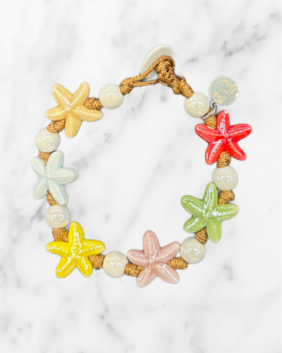 Bracciale in ceramica colorata attraverso la tecnica della smaltatura, cordino cerato e dettaglio in acciaio. Resistenti all'acqua. Essendo realizzati a mano il colore potrebbe leggermente variare, donando unicità ad ogni pezzo. Il bracciale misura 20 cm circa ma può essere adattato al proprio polso estendendolo. Ogni ordine verrà spedito con una confezione regalo.
